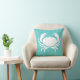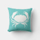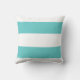 ein Teil des Ozeanteppichs CRAB WHITE auf einer Seite mit aquamarinem blauem Kissen und auf der Rückseite mit aquamarin-weißem Streifen.
