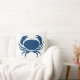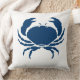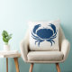 ein Teil der Ozeandekoration CRAB auf aquamarinem, blauem Kissen auf einer Seite und aquamarin-weiß auf der Rückseite. Design von Sandy Closs
