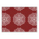 Dieses weiße Mandala sitzt auf einem dunkelroten Hintergrund. Die Farbe ist reich und warm. Teil der Sammlung Mola Mandala.