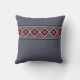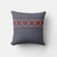 Ein Rahmen aus Himbeerroten, weißen und grauen geometrischen Diamantformen verleiht dem oberen Drittel dieses Kissens ein besonderes Interesse. Die Diamantbilder sind in einem Doppelzeilenrahmen enthalten. Alles wird auf einem passenden kohlegrauen Hintergrund platziert. Die Rückseite des Kopfkissens hat das gleiche Design.