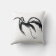 Eine minimalistische schwarze Silhouette eines Krans im Flug, elegant dargestellt mit ausgestreckten Flügeln und einem langen, schlanken Hals. Das Design vereint die Eleganz der Vogelbewegung mit ihren gekrümmten Linien und der fließenden Form, die ein Gefühl von Freiheit und Ruhe schaffen.