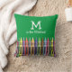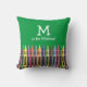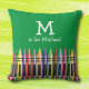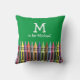 Grüner Hintergrund mit mehrfarbigen Stiften in einer Reihe unten. Personalisieren Sie mit großen, weißen Monogramm in der Mitte und darunter ist "ist für den Namen" darunter. Ändern Sie den Schriftart, die Farbe des Schriftartes oder den Hintergrund, wenn Sie möchten. Super leicht!