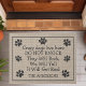 Dieses lustige Haustier Doormat Design zeigt die Worte "Crazy Hunde leben hier. KNOCK NICHT. Sie werden bellen, wir werden schreien. Es wird echt werden." Personalisieren Sie diese niedlichen rustikalen Imitate bedecken die Türmatte mit Ihrem Familiennamen und persönlichen Gruß. Die perfekte moderne Hauswärmung oder das Geschenk neuer Hausbesitzer.