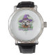 Uhr, Vintage Männeruhr mit schwarzem Lederarmband