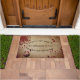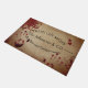 Dieses benutzerdefinierte Doormat weist ein undurchsichtiges Horror-Design auf. Der Hintergrund ist eine abgenutzte und schmutzig aussehende braune Farbe mit durchbrochenen Blutflecken. Zwei blutige Hände sind unten abgebildet. In der Nähe des oberen Drucks wird ein Musterschlachtername gedruckt, den Sie personalisieren können, um Ihren eigenen individuelle Name und Text einzufügen.