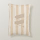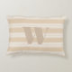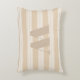 Neutrales Akzent Kissen mit cremefarbenen und bräunlichen Streifen mit einem typischen Monogramm-Brief in einem dicken Schriftart. Die Dekoration ist in einem eleganten, trendigen Stil gehalten.