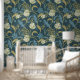 Ein gewagtes, maximalistisches und blühendes Vintages Jugendstil-Muster auf dunkelblauem Hintergrund