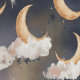 Mit diesem bezaubernden Mond- und Wolkentapeten verwandeln Sie Ihren Raum in eine himmlische Traumwelt. Goldene Halbmonde und weiche Wolken treiben durch einen tiefblauen Himmel und schaffen eine beruhigende und magische Atmosphäre. Dieses Tapete mit Schale und Knüppel lässt sich leicht auftragen und entfernen, wodurch es sich perfekt eignet, um jedem Zimmer eine Touch von charmantem Charme zu verleihen.