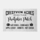 "CRESTVIEW ACRES PUMPKIN PATCH" - Dieses frische, lustige und festliche Herbstkunstdesign ist mit einem Halloween-Bat und einem Kürbispaar an den Seiten geschmückt. Wir haben das auf alles platziert, angefangen bei Kissen und Decken, bis hin zu Matten und Puzzles, und so weiter. Schauen Sie sich jeden Herbst für diese besondere Touch von Launen an oder verließ sie das ganze Jahr über in Ihrem Bauernhof oder auf der Country-Zuhause.