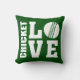 Green CRICKET LIEBE Cricketkissen. Cricket-Spieler werden dieses komfortable Cricket-Kissen Liebe! Dieses Cricket-Kissen hat ein Liebe-Thema mit den Worten CRICKET und LIEBE in fett weiß Buchstaben. Ein Cricket-Ball dient für den Buchstaben O und gibt diesem Design ein wahres Kricketing-Thema. Auf der Rückseite dieses Kissens ist das gleiche Cricket-Liebe-Design, aber wie ein fantastisches gedruckt, um alle gemustert. Dieses komfortable Kissen sieht auf jedem Stuhl großartig aus und wird jedem zeigen, dass man eine glühende Liebe für Cricket hat. Mehr Spaß Cricket-Geschenke und Merchandise im STAND UP AND CHEER Shop!