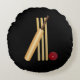 Cricket - Wicket, Bat and Ball, schwarzer Hintergr Rundes Kissen