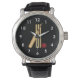 Uhr, Vintage Männeruhr mit schwarzem Lederarmband