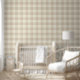 Warmes, traditionelles, neutrales Creme und beige Gingham kariertes Muster, das den süßen Hasen und den kleinen Vogelsammlungen entspricht. Dies ist ein festes Muster, aber Sie können die Größe und Position des Musters ändern. Dieses gemütliche Muster ist ideal für ein zeitloses, neutrales Interieur und perfekt für ein neutrales Kinderzimmer.