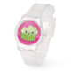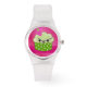 Ein niedliches Design mit einem kuscheligen Kuchen mit grünen Polka-Punkten und einer Erdbeere darüber. Ändern Sie den Stil der Uhr nach Wunsch.