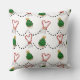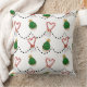 Feiern Sie die Saison mit einem Schwirl von Süße und funkeln! Dieses festliche Kissen besticht durch ein zauberhaftes Muster von Zuckerrohrherzen, die wie Weihnachtsmannmützen getrimmt wurden, und knuddeligen Weihnachtsbaumkuchen mit goldenen Sternen. Es ist durch gepunktete Linien verbunden und auf einem knalligen, weißen Hintergrund verstreut. Es ist eine fröhliche Mischung aus Leckereien und verspieltem Charme, ideal für gemütliche Ecken, eine fröhliche Küche oder ein Lächeln.