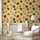 Gestalten Sie mit diesem farbenfrohen Kuchen und Muffins, gemusterter Schale und Tapete mit Knüppel, eine Kunstwand in Ihrer Küche