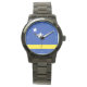 Uhr, Vintage Männeruhr mit schwarzem Lederarmband