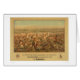 Die Bancroft Bibliotheks-Geschenke: Ansicht letzten Stands Generals George Armstrong Custers an wenigem großem Horn, Montana, 1876 darstellende Kampfszene zwischen US-Soldaten und gebürtigen amerikanischen Ureinwohnern. General Custer, tragendes Wildleder, Kämpfe in der Mitte des Handgemengen. Bewaffnete Kämpfer tragen Gewehre, Stangen, Muskatblüten, Schilder, Tomahawks und andere Waffen.