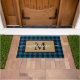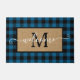 Schön zeitgenössisches, blau-schwarz kariertes kariertes Muster mit freundlichem Willkommensgruß in einem eleganten Kalligraphie-Schriftart geschrieben. Mit Raum zum Anpassen oder Personalisieren mit Familiennamen Monogramm oder Initial Ihrer Wahl. Originelle rustikale Dekoration Akzent für die Dekoration der Vorderseite oder Haustür Ihres Hütte-Hauses, Blockhütte, Berghütte, Angellager, See oder Fluss Urlaub Zuhause.