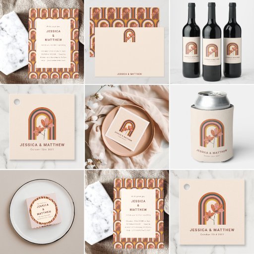 Retro Rainbow Floral Arch Wedding StationeryDesignt von Opal Ellery