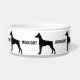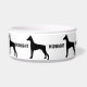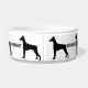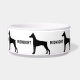 Das ist die perfekte Doberman Pinscher-Fressschale mit Doberman Pinscher-Grafik, die den ganzen Gang um die Schale herum spielt, besonders wenn man sich in der dafür vorgesehenen Schachtel den eigenen Doberman Pinscher-Namen anpasst.