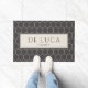 Create a family name doormat to greet friends and family, with your family name in soft charcoal gray and cream with a hexagon tile pattern background. Your family name it centered within a frame, creating a graceful welcome with a sense of heritage. The typeface is inspired from first-century Roman inscriptions with classical proportions but adding a modern flair, making it popular for elegant, historic-feeling designs.