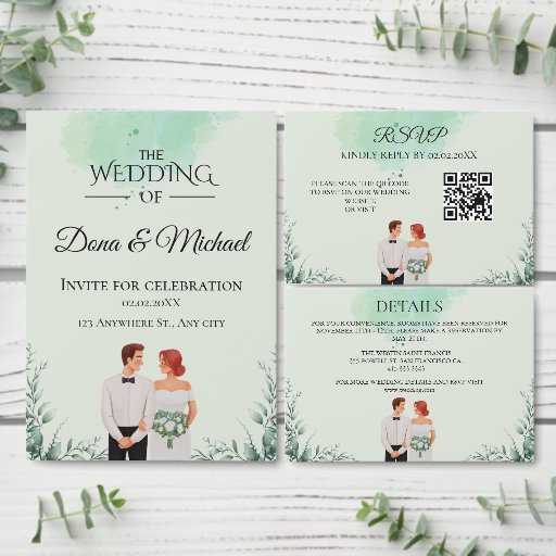 Custom green watercolor flowy wedding begleitkarte