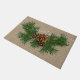 Schöne klassische beige taupe Farbe Jute Einbruch Leinen Textil Gewebe Webmuster mit saisonalen Bild von Kiefernzapfen und Nadeln, und ein klassischer Spaß Merry Grußwunsch, dass Sie anpassen oder personalisieren können, um Ihre Wünsche. Dieses Jahr wurde das Design für den Innenarchitekten, oder für den Liebhaber der Hütte, der die Winter- und Weihnachtsthemen liebt, geschaffen. Originelle und moderne Produkte für diejenigen, die Liebe dekorieren die Veranda, Patio oder Hinterhof Sitzplätze sind von ihrer Zuhause, Log-Kabine, Hütte, See oder Fluss Urlaub Zuhause.