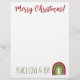 Custom Holiday lettehead mit boho Weihnachtsbaum. Weihnachts Schreibpapier Vorlage. Frieden Liebe und Freude! Schreibwaren für die Winterferien. Niedliches handgezeichnetes Design mit handgeschriebener Typografie. Rot und Grün. Ideal für Menüs, Party-Einladungen, Veranstaltungen und andere schriftliche Kommunikation.