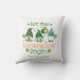 Decorate your home with this Let the Shenanigans Begin throw pillow featuring vibrant green gnomes and clovers. This personalized St Patricks Day pillow is a fun addition to your living room holiday decor. Add a name for a unique Irish gift that brings good luck energy and vibrant retro charm to your couch.