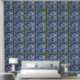 An acrylic abstract painting with the impression of green leaves and purple flowers.