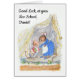 Eine "Viel Glück an deiner New School" Grußkarte, mit einer kleinen Maus, die Mousehole Hütte zum Set für seinen ersten Schultag verlasse. Dieses Design stammt aus einer handbemalten Aquarellbildermalerei von Judy Adamson. Sie können sowohl die Frontabdeckung als auch die Insider-Nachricht personalisieren.