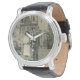 Uhr, Vintage Männeruhr mit schwarzem Lederarmband