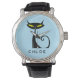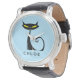 Dieses personalisierte Armbanduhr-Design besticht durch ein Retro-Design aus der Mitte des Jahrhunderts, eine moderne "atomare" schwarze Katze mit großen gelben Augen und einem lockigen Schwanz. Sie können die Rechtschreibung, den Stil, die Farbe und die Größe des Schriftartes mit der Schaltfläche Zazzle Personalize leicht ändern.