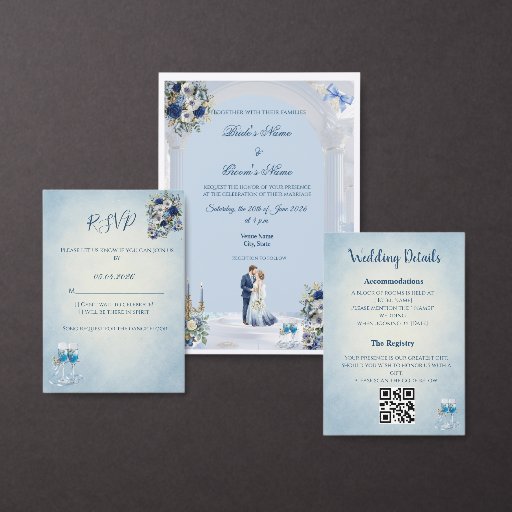 An elegant wedding registry insert card featuring royal blue florals. Perfect for sharing your gift preferences and website link with guests in a stylish way.