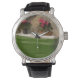 Uhr, Vintage Männeruhr mit schwarzem Lederarmband