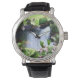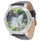 Uhr, Vintage Männeruhr mit schwarzem Lederarmband