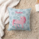 Pink, girly and cute. A whimsical Christmas Pillow featuring a pink Unicorn in a swirl of blue stars forming a Christmas tree shape. The Background is a swirl of different shaped snowflakes. Customize by changing the name to yours to make it your own or special gift. The pillow matches a range of pink Unicorn Christmas custom ohrts and stationary.