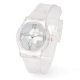 Anpassbare weiße Ideogramm des Ox auf Original gezeichnet als Hintergrund. Sie können das Jahr und die Farbe des Ideogramms ganz einfach ändern, indem Sie auf die Schaltfläche Anpassen klicken. Design auf Silicone Strap Clear Uhr mit jungen Stilnummern. Ideal für Chinesisches Neujahr des Ochsen oder Geburtstags (Menschen geboren im Ox Jahr).