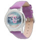Uhr, Kinderuhr aus Edelstahluhr mit lila Lederarmband