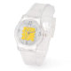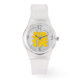 Anpassbare gelbe Ideogramm des Affen auf papiergeschnittener Illustration als Hintergrund. Sie können die Farbe des Ideogramms einfach ändern, indem Sie auf die Schaltfläche Anpassen klicken. Design auf Silicone Strap Clear Uhr mit jungen Stilnummern. Ideal für Chinesisches Neujahr des Affen oder Geburtstag (Menschen geboren im Affenjahr).