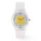 Anpassbare gelbe Ideogramm des Roosters auf papiergeschnittener Abbildung als Hintergrund. Sie können die Farbe des Ideogramms einfach ändern, indem Sie auf die Schaltfläche Anpassen klicken. Design auf Silicone Strap Clear Uhr mit jungen Stilnummern. Ideal für Chinesisches Neujahr der Rooster oder Geburtstag (Menschen geboren im Rooster-Jahr).