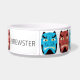 Diese Schüssel enthält traditionelle japanische Folklore oni Dämon in einem blauen und roten Wiederholungsmuster. Personalisieren Sie es mit dem Namen Ihres Haustieres!