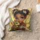 An adorable African-American anime fairy holding her chibi baby dragon throw pillow.
