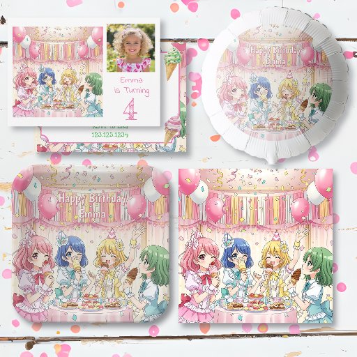 Cute Anime Girl's Ice Cream Birthday Party Pappteller