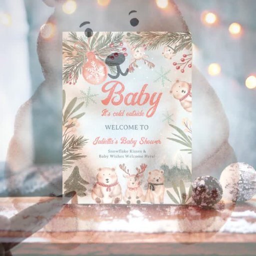 Baby, It's cold outside! Step into a winter wonderland with our baby shower invitation featuring playful polar bears and whimsical reindeer and cute fox. Against a festive blue backdrop adorned with snowflakes and icy patterns, these adorable arctic animals set the stage for a magical celebration. Cute floral pine branches and mistletoe add an extra layer of charm, creating a whimsical and festive atmosphere. The color palette, a blend of soft blues and frosty whites, evokes the serene beauty of a snowy landscape. The whimsical font, accented with snowflakes and stars, adds a touch of magic to your customizable event details. Ideal for winter and holiday-themed baby showers, this enchanting invitation captures the spirit of the season with its delightful design. Celebrate your little one's arrival in style with this gender-neutral and charming invitation that promises a celebration filled with warmth and joy.