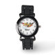 This personalized kids' watch features a bright and cheerful cartoon illustration of a smiling yellow and red firefighting airplane spraying water.