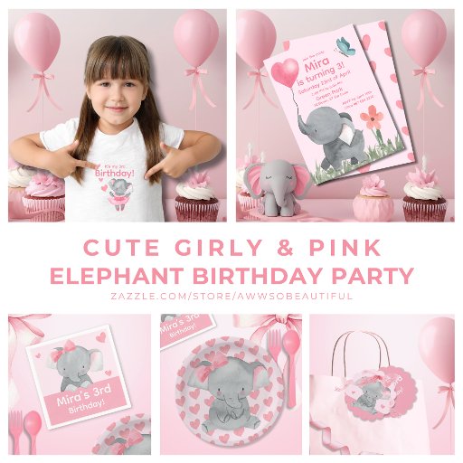 Cute Girly and Pink Elephant Birthday PartyDesignt von Amazing Beautiful Creative Designs