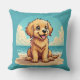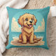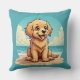 Cute Golden Puppy at Sunny Beach Scene Kissen