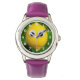 Uhr, Kinderuhr aus Edelstahluhr mit lila Lederarmband